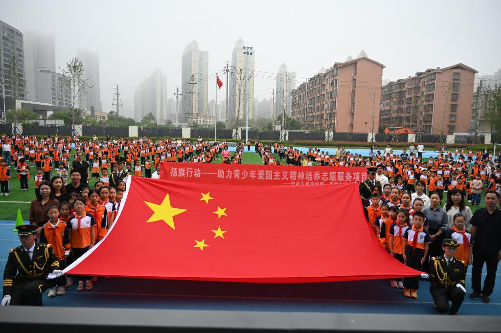 9月29日,晨光初透,湖南湘江新区岳麓实验谷山小学的操场上,一面长5米、宽3.3米的巨幅国旗在师生注目下缓缓展开。这面由北京市人民政府天安门地区管理委员会赠予德赢vwin体育官网登录、曾于2010年在天安门广场冉冉升起的国旗,而今成为连接大学与小学、历史与未来的精神纽带。