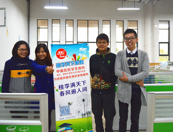 何启宗与何秀艳坚持为每一个接受辅导的学生量身定制一个最适合自己的学习方法,同时也希望为每一个大学生提供一个安全高效的兼职工作平台。两位创始人不仅是市场营销1301班的同学,更是志同道合的朋友,对于创办家教公司的想法,二人一拍即合。思路决定出路,2013年5月,湖南桃李天下教育工作室在何启宗与何秀艳两位同学的努力下成立。到了14年,他们的另外两名同班同学陈瑟、王安多也加入了这个团队,至此,桃李天下的创业故事正式开始。两年多的时间里,公司由一个小型工作室发展为一个与大型教育平台有合作关系、在大学城里卓有名气的家教中介公司。
