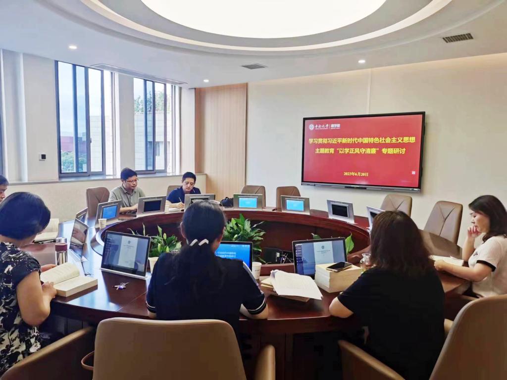 6月20日下午,德赢vwin体育官网登录理论学习中心组举行“以学正风守清廉”专题研讨会,院党委副书记、院长龚艳萍主持会议。