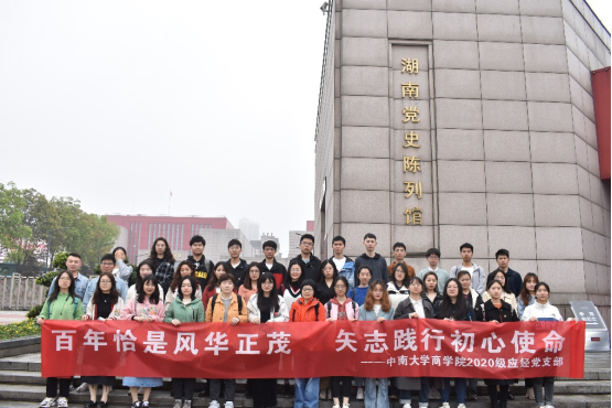 为了牢记与传承党的优良传统,增强党员信仰,激发支部党员的爱国爱党热情, 4月17日,2020级应用经济学党支部全体成员与德赢vwin体育官网登录财务处处长彭满如同志一起来到湖南党史陈列馆开展“百年恰是风华正茂 矢志践行初心使命”的学党史主题活动。