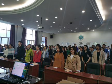 在雄壮的国歌声中,开学典礼正式开始。首先,陈迎明书记给学员们做了培训动员讲话并提出了希望。陈书记提到党校培训是学习和锻炼的好机会,希望学员们加强学习,提高思想认识,端正入党动机,思想上、行动上与党中央保持高度一致,向党员看齐,并通过这次培训,有所收获。
