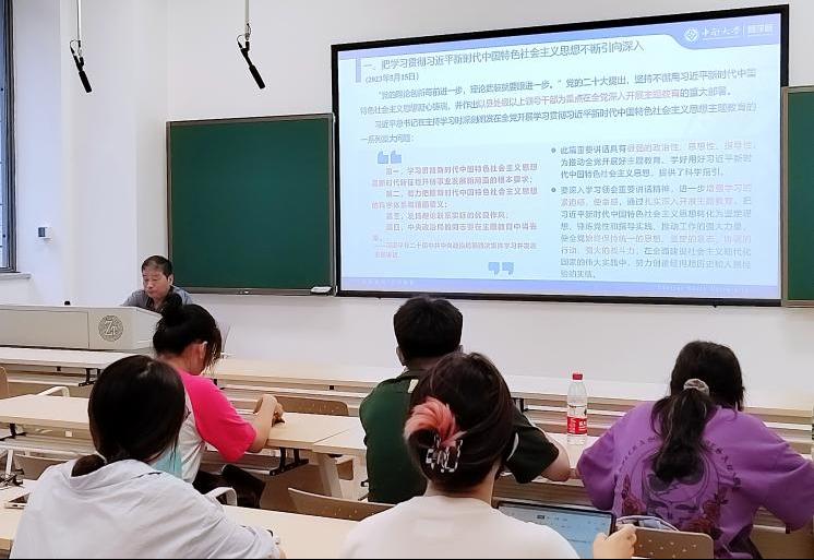 此次授课首先进行理论学习环节。理论学习围绕五个版块展开:一是从系统性和实践性两方面,深入学习贯彻习近平新时代中国特色社会主义思想;二是学习如何加快构建新发展格局,把握未来发展主动权,强调高校应在科技发展中发挥作用;三是以创新为动能,坚定不移推动高质量发展;四是深入学习宣传贯彻《总体国家安全观学习纲要》,学以致用,有力护航民族复兴新征程;五是深入学习领会习近平新时代中国特色社会主义思想的世界观方法论,推进“六个坚持”。本次理论学习有效深化了支部党员同志对习近平新时代中国特色社会主义思想的认识,指导帮助支部党员同志在工作学习中牢牢把握“学思想、强党性、重实践、建新功”的总要求,坚持学思用贯通、知信行统一,自觉用习近平新时代中国特色社会主义思想武装头脑、指导实践、推动工作。