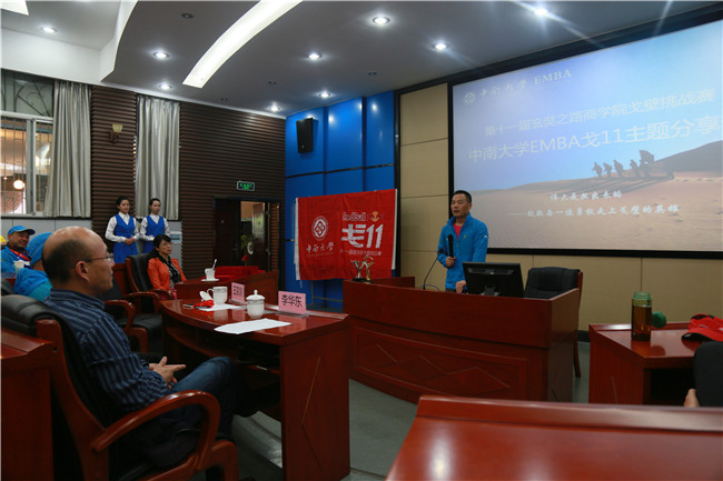 我是第二次参与到戈壁挑战赛中来,我们一起想象一下,在戈壁上跑是一种什么样的体验?我们来讲戈壁的分享,更多讲的是组织和个人的管理。组织是什么?我们的这次成绩是不错的,我们这次取得22名的成绩,很多他校戈友给予我们赞赏。其实用我们教练的话来说,如果我们这个组织纪律更加严厉一些,要求定的更高一些,在赛场上执行的战略战术更加彻底些,我们的成绩可以在20名之内。现在22名这是预计之中,也是意料之外。预计之中是20左右,意料之外是和我们的目标差远了。一个组织就要有他的纪律,不管是学校、家庭还是公司,这都是不同形态的组织,他的主心骨是什么?就是共同的价值观。其实这次我们必胜的信念并不强烈,说白了我自己也是一样。第一天比赛,都是悠哉悠哉,如果在赛场上是这样的状态肯定是不行的。我们很幸运,有位很严厉的教练。他一边跑一遍“骂人”,后来陪老顾跑,说即使是你“死”你也要“死”在终点,“死”过终点。从个人的角度出发,之前我也讲过,活动是载体,带来的更多是正能量,此项活动我本人不仅给予支持,并身体力行参与进来。其实人生有短有长,但是活在世上要活得精彩,成功的定义应该是精彩的、丰富的、多维的人生。我们为什么不在湘江边上去跑而是要去戈壁跑,因为在不同的环境下的感受是完全不一样,恍惚间觉得自己还在戈壁上,总觉得长沙的路怎么那么直。在这种环境下能坚持下来,而且都是有效成绩,从这一群人的身上能给我启发,跑完之后,漫漫前路没有什么困难能够难倒我。从戈壁上发现,这个世界是美好的,是公平的,你就觉得凭着你的努力和拼搏你就能成功。就像我们的队医已经不再是医生,而是教练助理,经常跑到我们的面前来命令我们休息。我在中南四年了,在这里,改变了我的人生圈子,学会了包容和尊重,这是我性格里最缺的,这就是最真实最本质的感受。