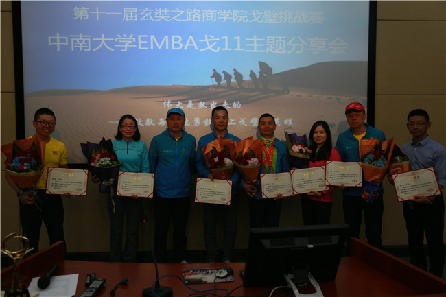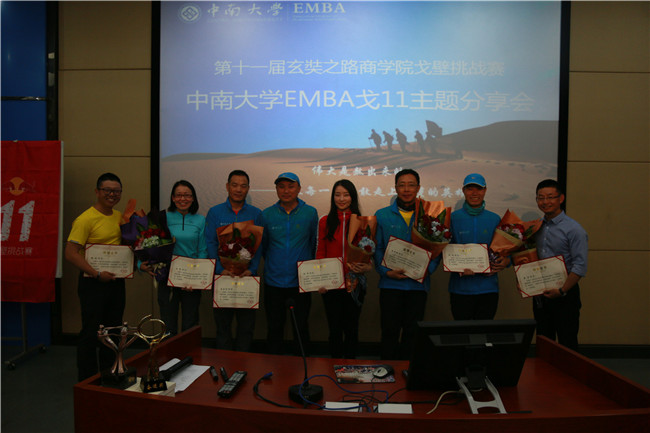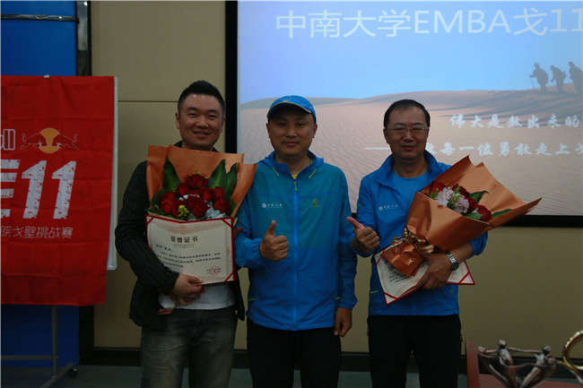我们这个团队是戈10的时候就建立起来的,老戈,但跑和走真不是一个概念。这次戈壁跑完眼睛只湿润了一次,这次更加轻松。虽然轻松但是在跑的过程中比赛的第二天就脚肿了,加上自己脚踝关节也不太好,跑起来比较吃亏。我们不管怎么样设计这个目标,如何设想这个困难都不为过,任何事情都是预则立,不预则废,如果我们不做好充足的准备我们在面对困难的时候哪怕自己意志力很强大其实你都会面临着你最开始所意想不到的困境。我记得有一次和老顾在营地外面抽烟,我们就在评价我们的队伍,觉得真心不错,虽然都出了一些小状况,但都挺过来了,大家的意志力很顽强,EMBA人员的素质真不错。戈壁上就像你走鹅卵石一样,你根本无法避免自己的疼痛点,所以老顾说,只要不出大的状况,下一届的戈壁赛我们一定能为中南拿到更好的名次。我参加就是为了一个承诺,所以跑出来之后还是很赞同大家的说法:我们共同遇见了最困难的时刻,在最困难的时刻展现了每个人的行为方式和处事风格,这个时候结识的朋友就是真朋友。最后,希望大家都能去戈一下。