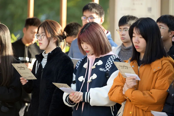 在师生交流环节,有同学问到“上下同欲”在大学生的学习生活中该如何运用时,颜教授回答道要大学生的学业学习与老师教学的节奏一致,同时要领会老师的教学目的。“如何将用兵之道运用到班委管理中去”,颜教授首先指出管理学的运用要分清楚组织性质,如军事化的管理更偏向于共性的培养,而班级的管理更强调人性化,应允许同学们去培养自己的个性。在同学们的掌声中,本期名家诵读活动圆满结束。