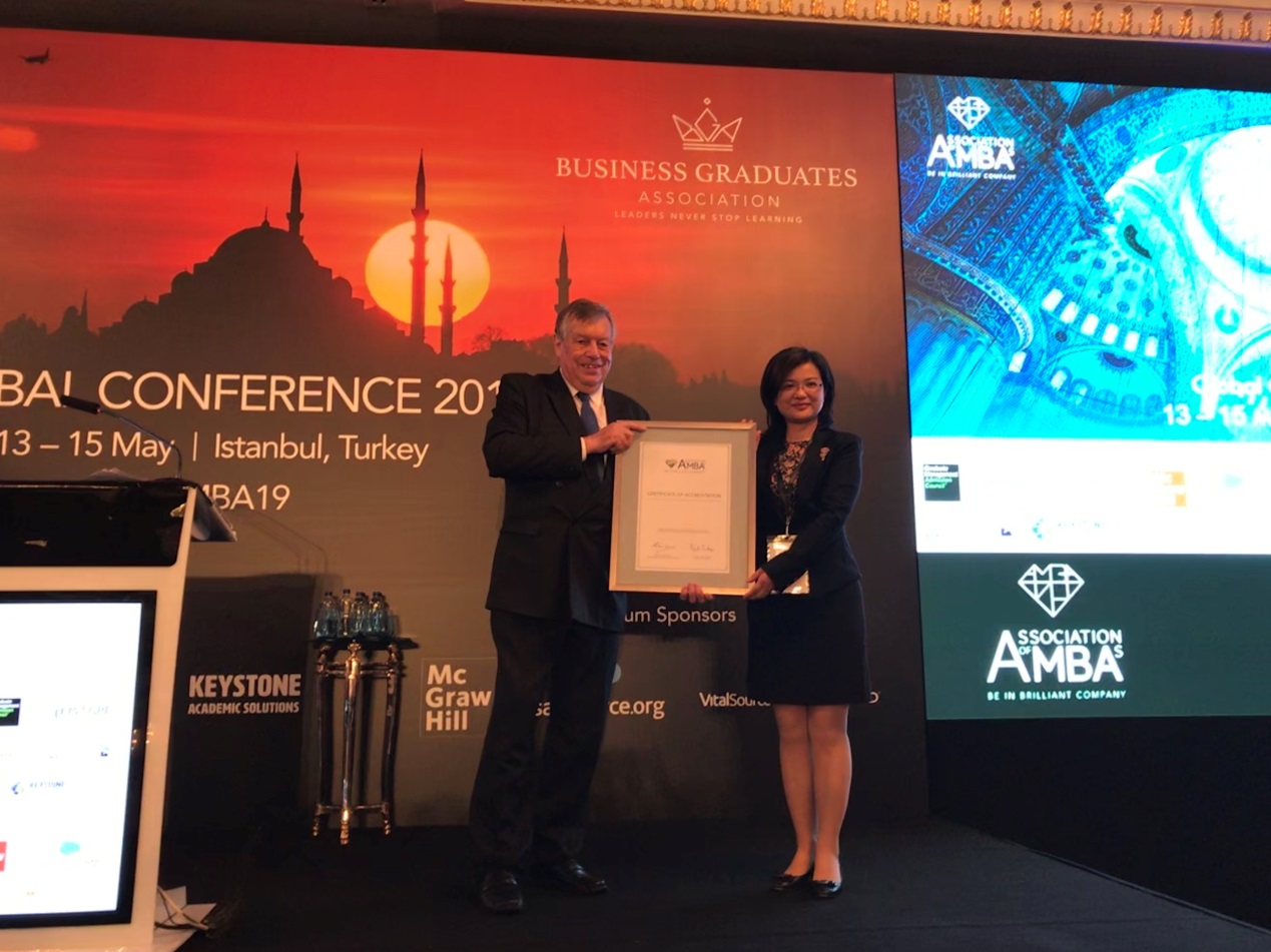 2019年5月15日,从土耳其伊斯坦布尔召开的2019 AMBA(英国工商管理硕士协会,Association of MBAs,简称AMBA ) 全球年会上传来好消息,院长龚艳萍教授代表德赢vwin体育官网登录从AMBA顾问委员会主席Andrew Lock(英国利兹大学德赢vwin体育官网登录荣誉教授)手中接过AMBA再认证证书,这标志着德赢vwin体育官网登录正式获得AMBA 再认证最高5年认证期。AMBA国际再认证的成功对于德赢vwin体育官网登录MBA、EMBA项目乃至学院整体发展具有极其重要的战略意义,标志着德赢vwin体育官网登录MBA教育得到了国际上管理教育同行的认可,是德赢vwin体育官网登录国际化进程中重要的里程碑。