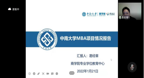 会上,易经章主任分享了德赢官网MBA项目的基本情况以及奖项申报经验。首先,他从学院认证情况、水平评估、招生情况、生源质量、师资队伍、培养模式等方面进行介绍,其中,重点阐述了培养模式的1个核心(打造一流品牌)、2个循环(MBA项目发展大循环和学员自身职业发展小循环)、3大体系(校内课程教学体系、“第二课堂”体系、学员活动体系)以及4大平台(MBA联合会、德赢vwin体育官网登录校友会、MBA指导老师平台、校外兼职导师和实践实训基地平台)。接着,他介绍了德赢官网参赛校友李明的申报信息,并分享了申报经验,即学院重视学员参赛、努力营造参赛氛围以及充分发挥MBA联合会的积极作用。