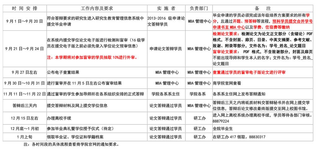 2019年秋季研究生(MBA)论文答辩及毕业工作流程表