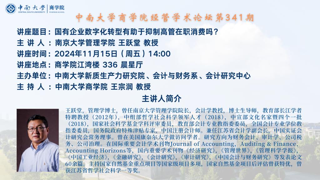 德赢vwin体育官网登录经管学术论坛第341期——南京大学管理学院王跃堂教授