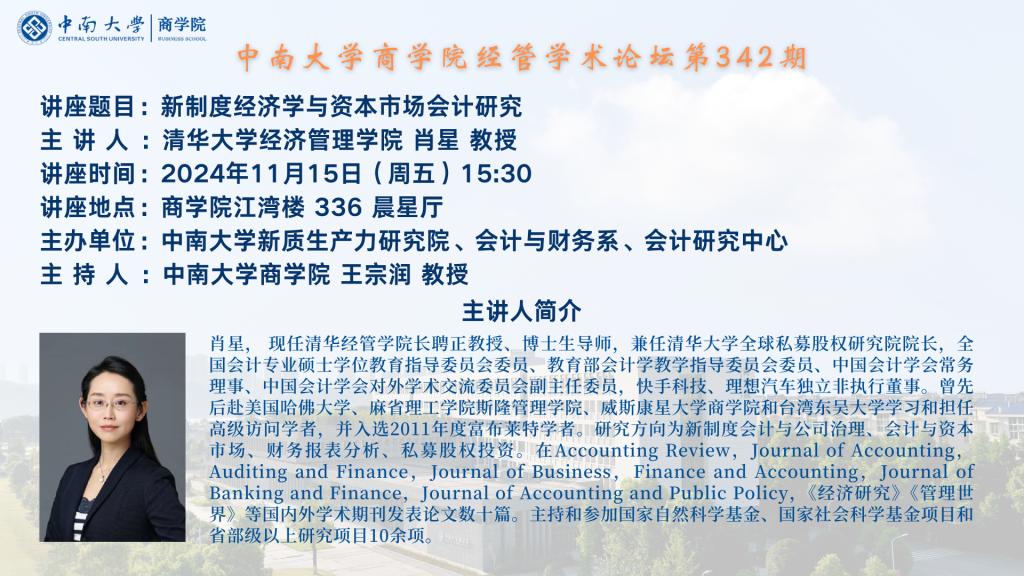 德赢vwin体育官网登录经管学术论坛第342期——清华大学经济管理学院肖星教授