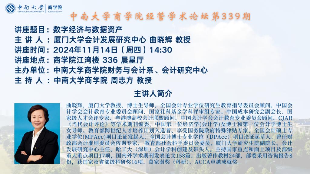 德赢vwin体育官网登录经管学术论坛第339期——厦门大学会计发展研究中心曲晓辉教授