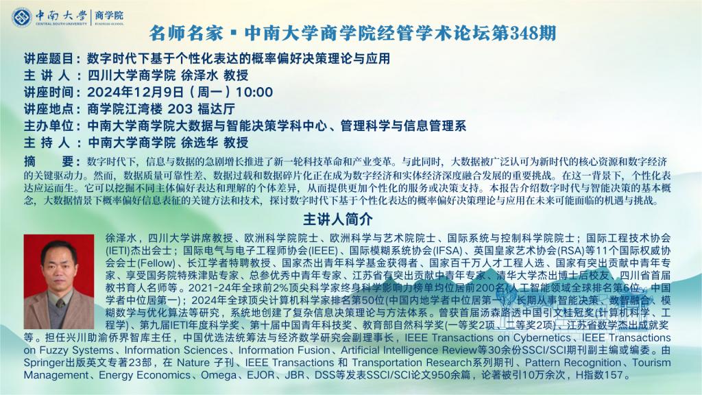 名师名家▪德赢vwin体育官网登录经管学术论坛第348期——四川大学德赢vwin体育官网登录徐泽水教授