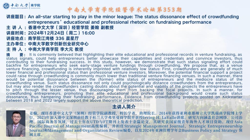 德赢vwin体育官网登录经管学术论坛第353期——香港中文大学(深圳)经管学院姜翰副教授