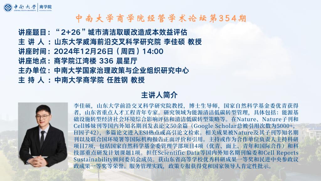 德赢vwin体育官网登录经管学术论坛第354期——山东大学威海前沿交叉科学研究院李佳硕教授