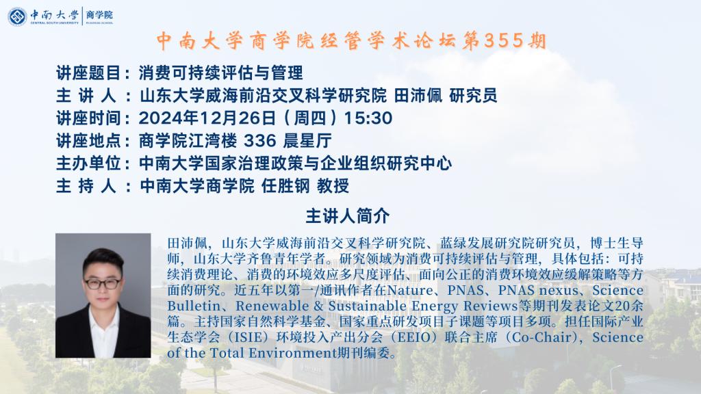 德赢vwin体育官网登录经管学术论坛第355期——山东大学威海前沿交叉科学研究院田沛佩研究员