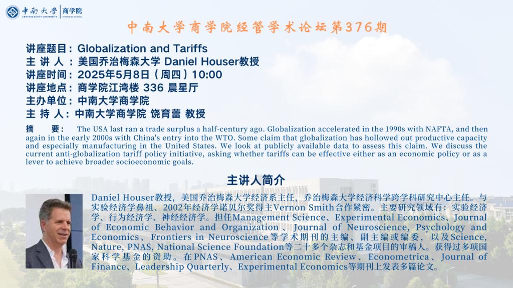 德赢vwin体育官网登录经管学术论坛第376期——美国乔治梅森大学Daniel Houser教授