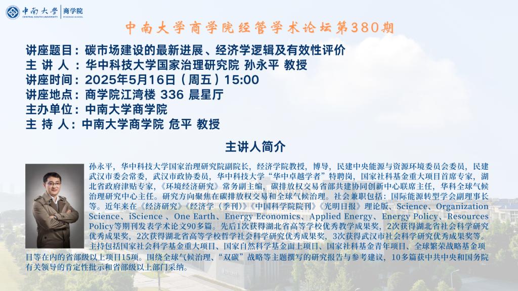 德赢vwin体育官网登录经管学术论坛第380期——华中科技大学国家治理研究院孙永平教授