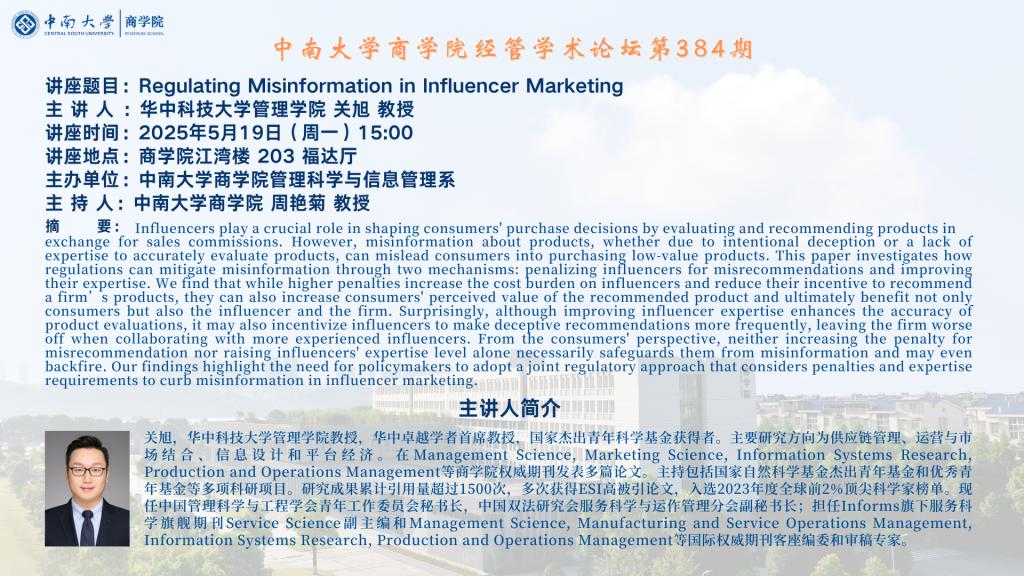 德赢vwin体育官网登录经管学术论坛第384期——华中科技大学管理学院关旭教授