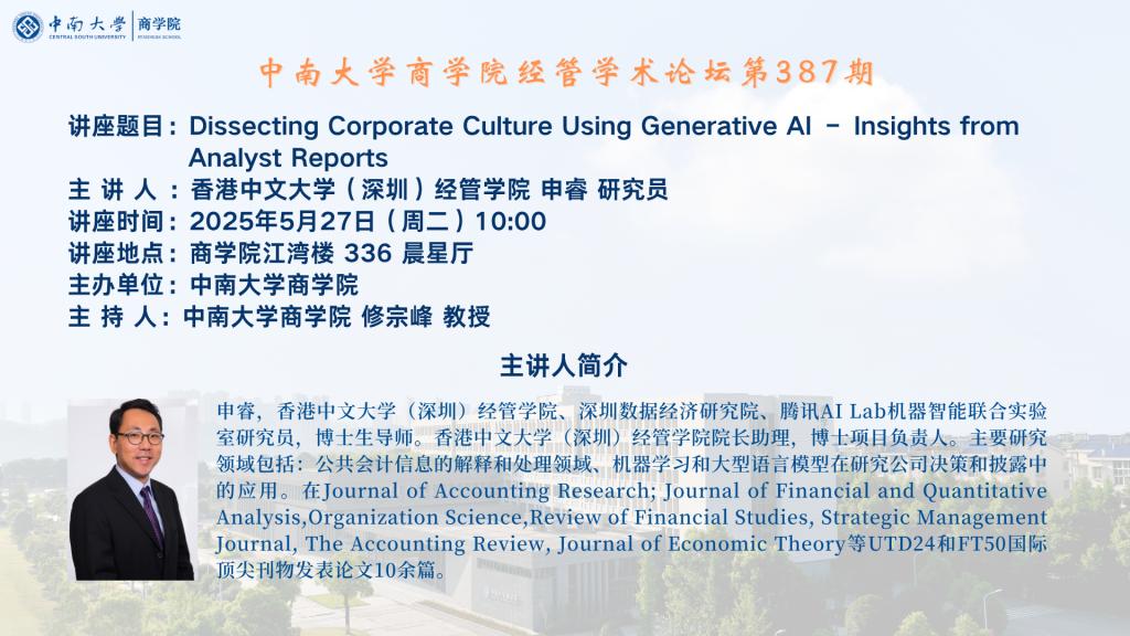德赢vwin体育官网登录经管学术论坛第387期——香港中文大学(深圳)经管学院申睿研究员