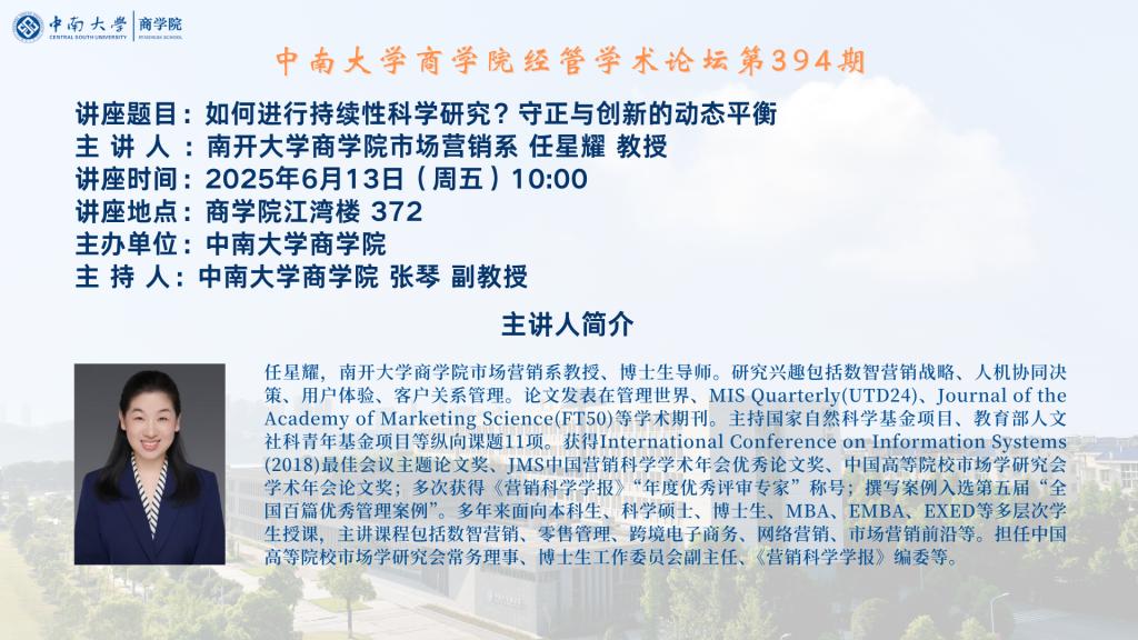 德赢vwin体育官网登录经管学术论坛第394期——南开大学德赢vwin体育官网登录任星耀教授