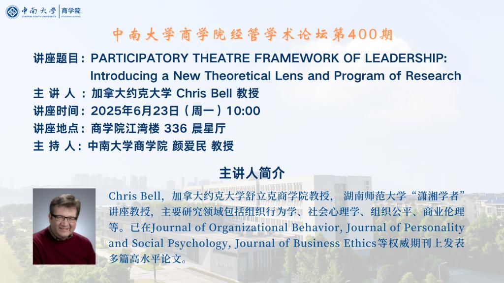 德赢vwin体育官网登录经管学术论坛第400期——加拿大约克大学 Chris Bell 教授