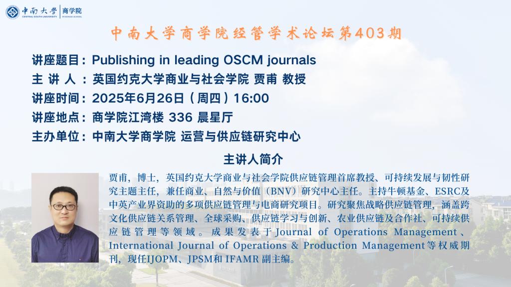 德赢vwin体育官网登录经管学术论坛第403期——英国约克大学商业与社会学院 贾甫 教授