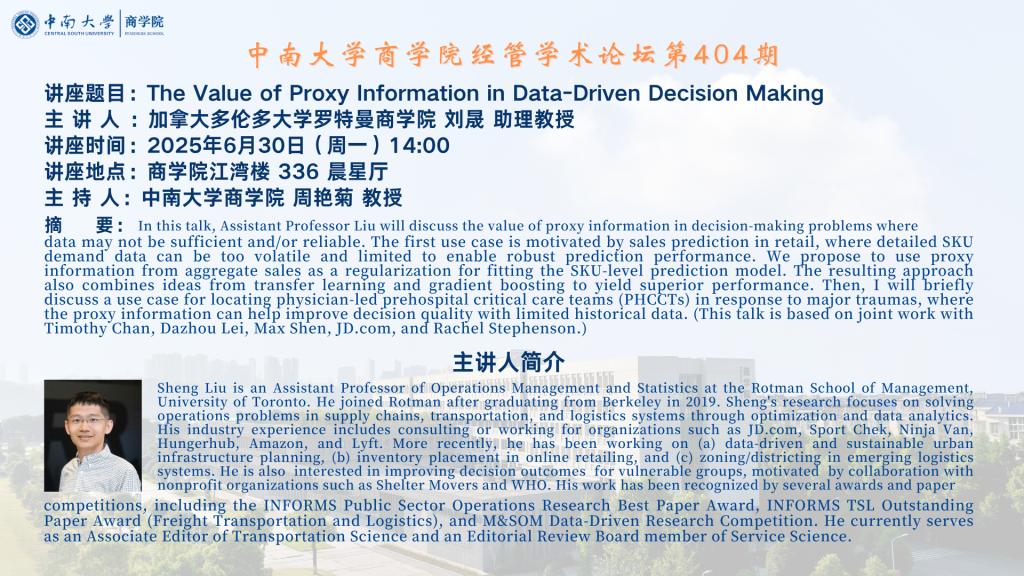 德赢vwin体育官网登录经管学术论坛第404期——加拿大多伦多大学罗特曼德赢vwin体育官网登录 刘晟 助理教授