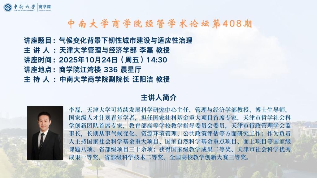德赢vwin体育官网登录经管学术论坛第408期——天津大学管理与经济学部 李磊 教授