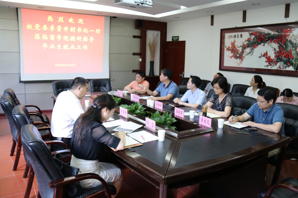 6月10日下午,校党委副书记李景升到德赢vwin体育官网登录调研指导毕业生就业工作,校就业指导中心主任徐赞,德赢vwin体育官网登录院长龚艳萍、党委书记任胜钢、党委副书记陈迎明、副院长毕文杰、李大元,学院毕业生辅导员参加,会议由龚艳萍院长主持。