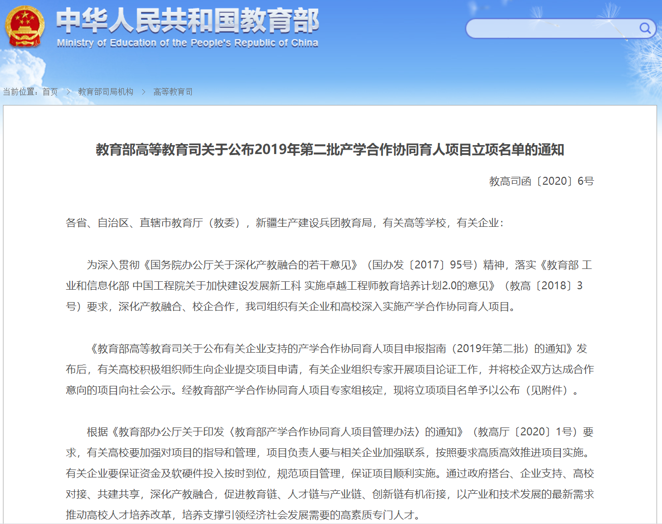 2020年6月5日,教育部高等教育司教高司函〔2020〕6号公布了2019年第二批产学合作协同育人项目立项名单,由德赢vwin体育官网登录会计学系副主任刘爱明副教授牵头组织、李红梅老师执笔申报的“德赢vwin体育官网登录-金蝶软件财务共享实践教学中心”建设项目获批立项。据悉,该建设项目也是德赢官网唯一入选该批次立项资助的项目。本项目希望通过政府搭台、企业支持、高校对接及共建共享,深化产教融合,促进教育链、人才链与产业链、创新链有机衔接,以产业和技术发展的最新需求推动德赢官网会计学专业人才培养改革,培养支撑引领经济社会发展需要的高素质会计专门人才,将为德赢官网会计学专业在信息化时代背景下的教学改革提供载体,为会计学专业发展打下良好的基础。