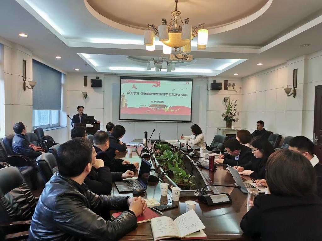 3月16日下午,学院党委在管理楼305会议室召开党委扩大会议,专题学习研讨《深化新时代教育评价改革总体方案》(以下简称《方案》),学院全体党委委员、党支部书记、系主任、中心主任出席。会议由任胜钢书记主持并作领学发言。