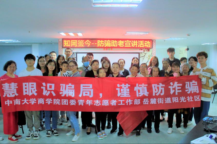 5月30日上午,由德赢vwin体育官网登录青年志愿者工作部与中国建设银行长沙中大支行共同举办的“知网鉴今——防骗助老”系列活动在岳麓街道阳光社区顺利举行。本次活动以提高居民防诈骗意识,保障财产安全为宗旨,邀请到了中大支行副行长钟靖及社区数十位老人参与。