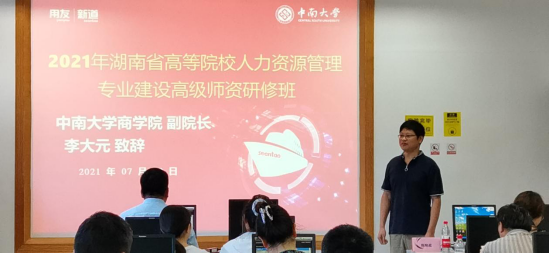 7月10-11日,由新道科技股份有限公司主办、德赢vwin体育官网登录承办,湖南用友软件有限公司支持的为期两天的“用友·新道湖南省高等院校人力资源管理专业建设高级师资研修班”顺利举行,来自湖南、安徽两省十所院校的二十一名骨干教师参加了本次师资研修课程。