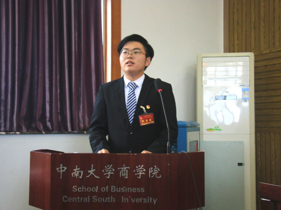 接下来,兄弟学院代表,资源与安全工程学院学生会主席苗奇鸿向大会致贺信。