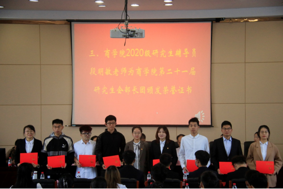 德赢vwin体育官网登录2020级研究生辅导员段明敏老师为德赢vwin体育官网登录第二十一届研究生会部长团颁发荣誉证书。