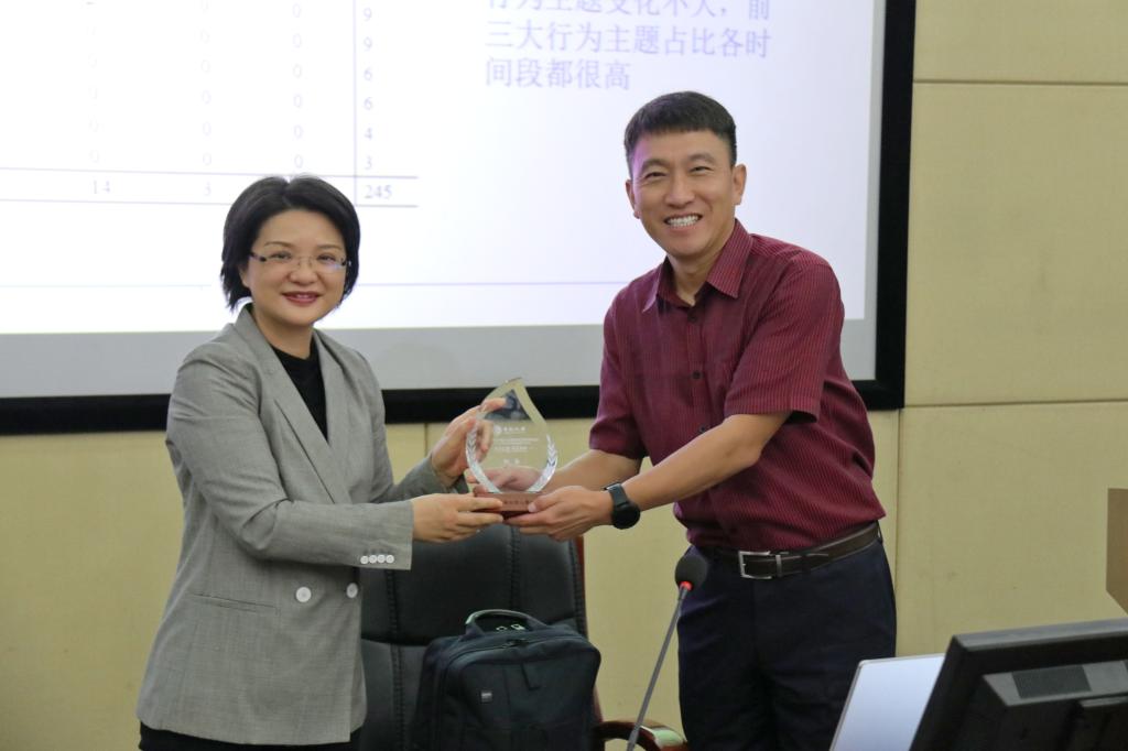 交流环节,参会师生就如何发现好的研究问题、如何进行不同研究领域的交叉融合以及英文论文写作问题与崔教授展开了热烈讨论,崔教授也结合亲身经历分享了自己的学术经验。学术报告后,龚艳萍院长向主讲嘉宾崔海涛教授授予了“德赢vwin体育官网登录名师名家学术论坛”纪念杯。崔教授介绍的方法论与提炼出的行为运作管理领域前沿研究主题对参会师生的未来研究具有重要借鉴意义,讲座最终历时2个小时,在热烈的气氛中圆满结束。