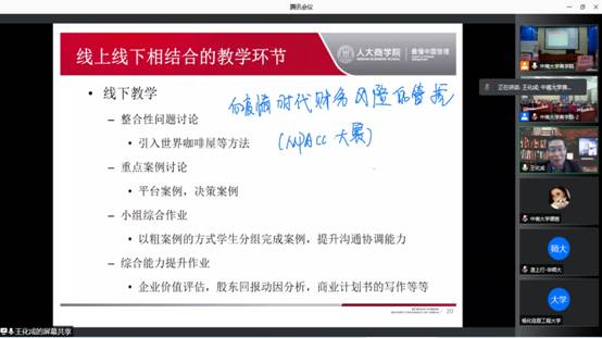 研讨会第一项为线上嘉宾主旨报告,第一场主旨报告由德赢vwin体育官网登录李大元教授主持,在第一场主旨报告中,王化成教授介绍了人生战略地图,引出对一流教学的认识,以及建设一流教学的具体措施,强调教学应该实现线上和线下相结合。
