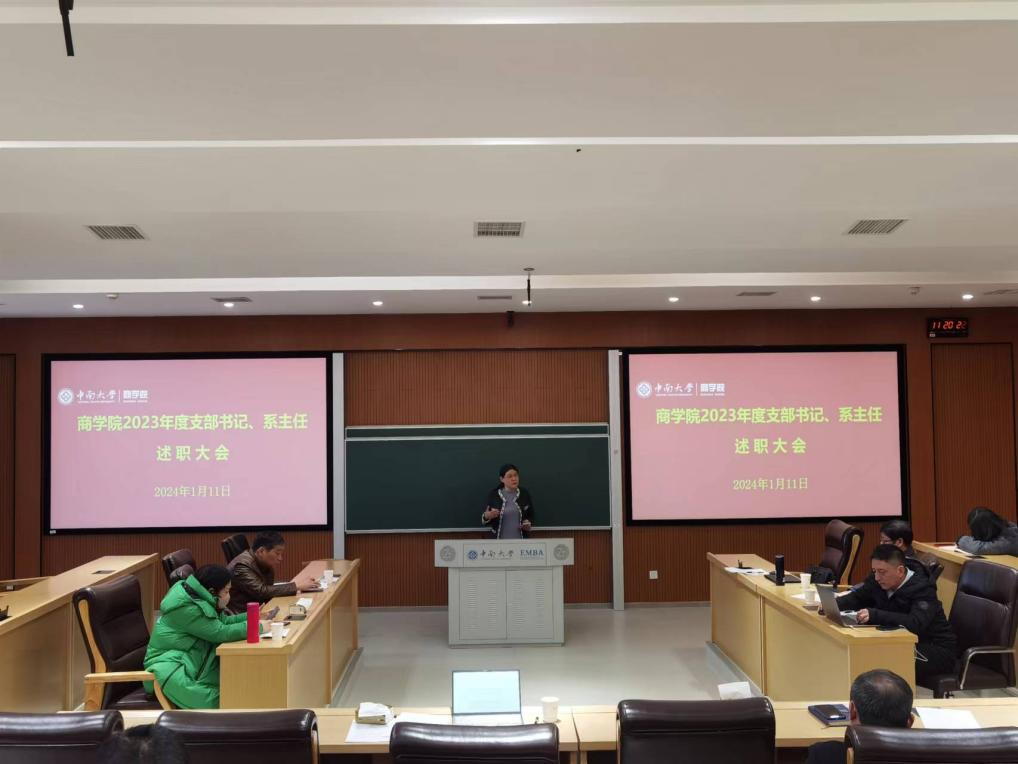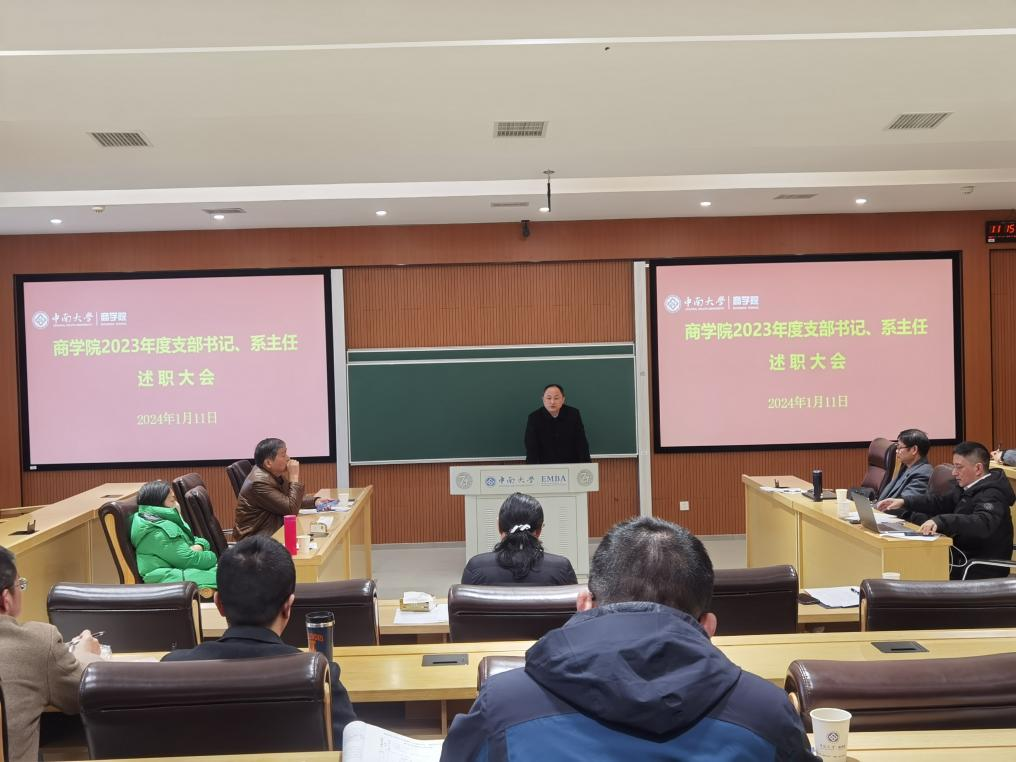 2024年1月11日上午08:30,德赢vwin体育官网登录2023年度党支部书记及系主任述职大会在江湾楼福达厅203会议室举行。会议采取现述职结合书面述职的方式进行,其中教工党支部书记、系主任、辅导员担任学生党支部书记现场参会述职,其他学生党支部书记提交书面述职报告。党委委员刘咏梅、王宗润、陈迎明、关健、李大元、毕文杰参会,会议由院党委书记刘咏梅主持。