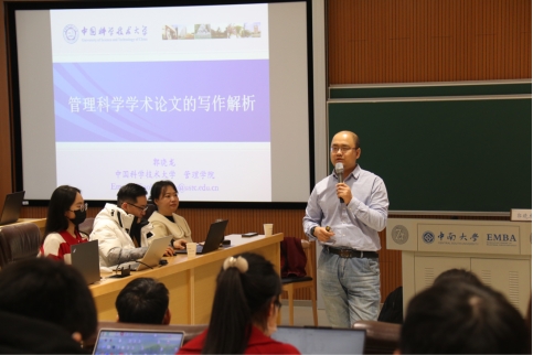 首先,郭晓龙教授从管理科学研究的本质出发,剖析学术论文的内容构成及写作过程中需要注意的事项。郭教授提出做一个好的引导者,通过文字引导读者的思想流动同时,针对管理科学学术论文写作的特征,郭教授结合其与传统自然科学学术论文写作的区别,分析管理科学领域学术论文的写作方法。