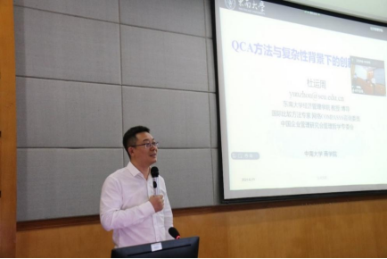 2021年6月11日,德赢vwin体育官网登录数字创新创业研究中心邀请东南大学杜运周教授主讲题为“QCA方法与复杂性背景下的创新创业研究”的主题讲座。本次讲座由李大元教授主持,在管理楼409教室线上线下同步开展。关健教授、周文辉教授、陈明淑副教授、王丁博士等老师与各年级同学参加了本次学术交流活动。