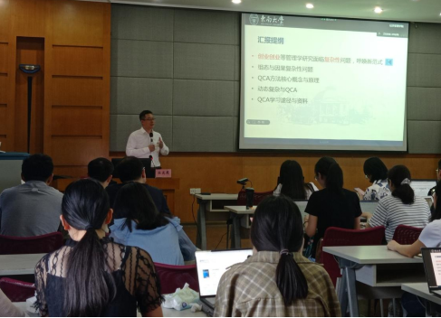 讲座互动环节,同学们就QCA方法学习历程、混合方法研究等问题踊跃提问。杜运周教授讲授风格深入浅出、幽默风趣,内容充实与实际相结合,参会同学都表现出了极大地热情。经过这次学习,同学们对QCA方法有了系统的了解,为未来的学术研究打下了一定的方法基础。