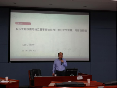 本次活动由德赢vwin体育官网登录会计与财务系主任修宗峰副教授主持。讲座伊始,修宗峰副教授对周泽将教授的到来表示欢迎,并详细介绍了周教授的任职情况和科研成果。周教授以“股东大会投票与独立董事异议行为:兼论论文选题、写作及投稿”为主题开始了本次讲座。