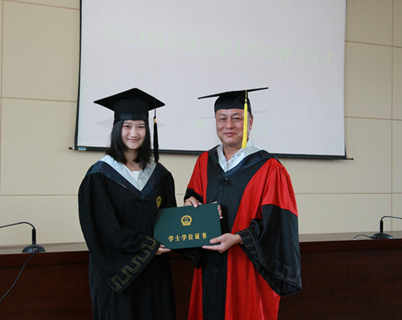 学位授予仪式在庄严的国歌声中拉开帷幕。博士生导师、副院长龚艳萍教授宣读了被授予学士学位的2014届学生名单。