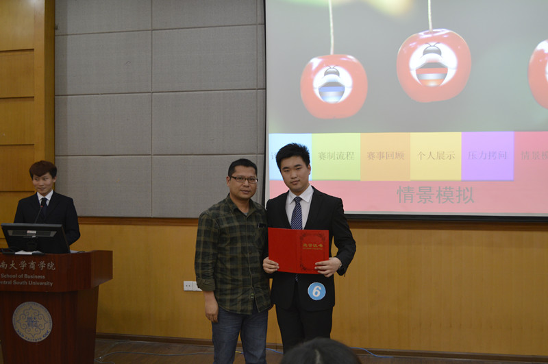 最后,三位之前表现较为优异的选手进入了第三轮——情景模拟。在模拟的现实场合中运用自己的能力和智慧来化解问题。“作为银行大堂经理,如何调节插队小伙儿与其他顾客之间的矛盾呢?”“如何向一个具有极高品牌忠诚度的家庭主妇推销全自动拖把?”等实际情景充分考验了选手们的临场应变能力。评委对几位选手都进行了详尽的点评,其中黄爱金同学的表现获得了一致赞许。