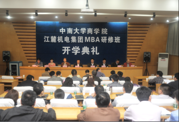 随后9点,德赢vwin体育官网登录江麓机电集团MBA课程进修班在世纪海翔厅举行隆重的开学典礼。出席典礼的嘉宾有:江麓机电集团有限公司董事长柳秀导博士、党委副书记余奠邑先生、湖南江麓实业发展有限公司总经理张喜春先生、江麓机电集团组织部部长刘欣侠女士、德赢vwin体育官网登录党委书记胡振华教授、副院长肖序教授、党委副书记李华东老师、MBA管理中心全体老师。典礼由副院长张颖教授主持。