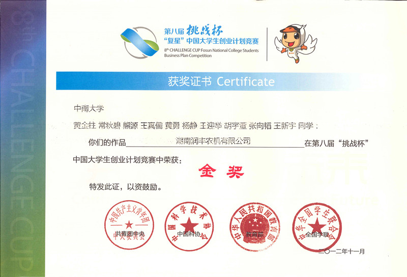 据悉,“湖南润丰农机有限公司”创业团队曾先后获得长沙市第八届大学生科技创新大赛一等奖、第三届中国(深圳)创新创业大赛企业创新组创新奖、湖南省第五届“挑战杯”大学生创业计划竞赛金奖、第八届“挑战杯”中国大学生创业计划竞赛金奖等。硕果累累的成绩背后,凝聚着团队顽强拼搏、锐意进取的精神,也彰显了学校、学院各级领导和老师的辛勤付出与悉心指导。学校、学院一直致力于培养学生创新创业意识,通过各种创新平台与组建优秀的师资力量,为学生的创新创业活动提供了良好的土壤。愿德赢官网学子在创新创业路上积极进取,求实务新,努力拼搏,续写德赢官网辉煌成就。