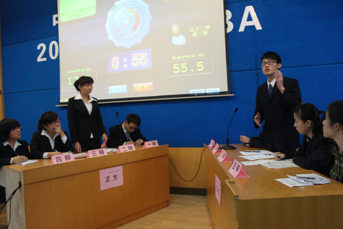 在随后的攻辩环节上,双方辩手旁征博引,妙语横生。双方辩手不断积极寻找对方漏洞,试图给予其致命一击。紧张的氛围渲染着观众的情绪,掌声不绝于耳。自由辩论环节更是将辩论赛推入高潮,双方辩手分别就政府压力、资源分配、公益表现等方面展开了对比赛主动权的争夺,思想的火花碰撞出绚丽的色彩。最后,双方四辩沉稳、富有条理的陈词为本次辩论画上了完满的句号。