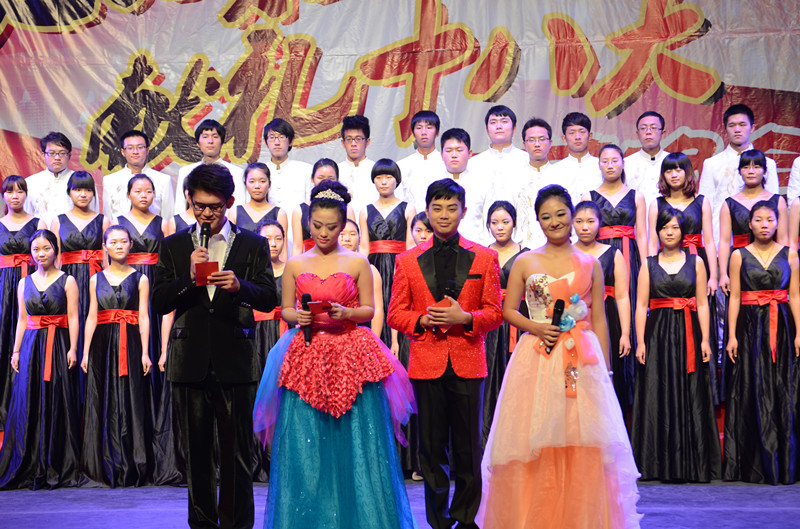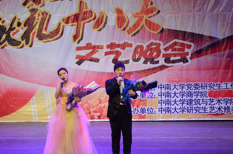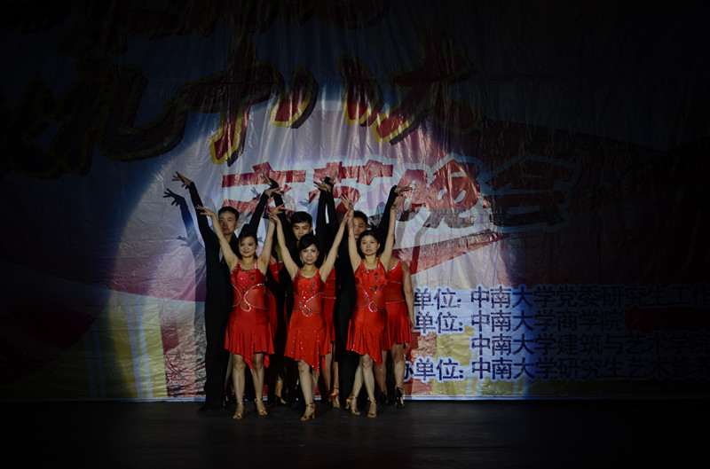 由我校研究生工作部部长白毅,与老师们一同献唱一首《东方之珠》将整场晚会推向高潮,德赢vwin体育官网登录师生共同表演的拉丁舞表演也博得了阵阵喝彩。我校国旗班身穿白色礼服,带领全场观众宣誓,大声喊出“与时代同历练,与中南共成长”的口号。