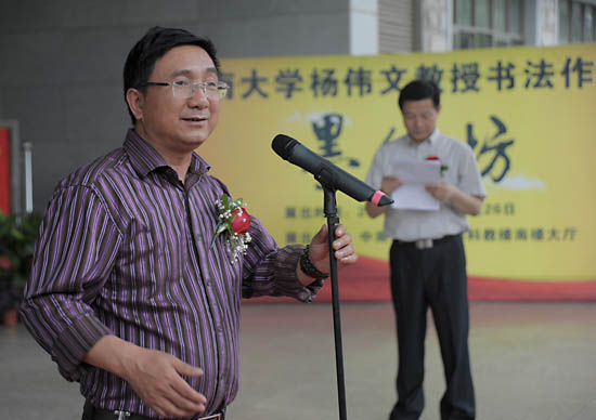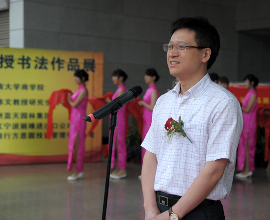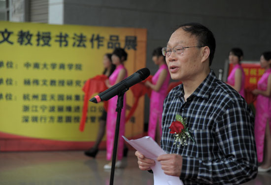 5月19日,德赢官网杨伟文教授书法作品展开幕式于科教南楼大厅隆重举行。出席开幕式的领导嘉宾有,我校常务副校长、德赢vwin体育官网登录院长黄健柏教授,德赢vwin体育官网登录党委书记胡振华教授、副院长张颖教授、党委副书记李华东副研究员、院长助理罗剑宏教授、院长助理徐选华教授、省直书协主席杨俊武先生、以及省书协、德赢vwin体育官网登录书协的专家、德赢vwin体育官网登录二级机构的部分党政领导等。开幕式由德赢vwin体育官网登录胡振华书记主持,黄健柏常务副校长致欢迎词,赞助商代表蔡琳先生、杨伟文教授研究生同学会代表申柯先生分别致贺词,杨伟文教授致答谢词。学校部分师生和杨伟文教授同学会的弟子参加了开幕式。开幕式最后进行了剪彩仪式以及合影留念。