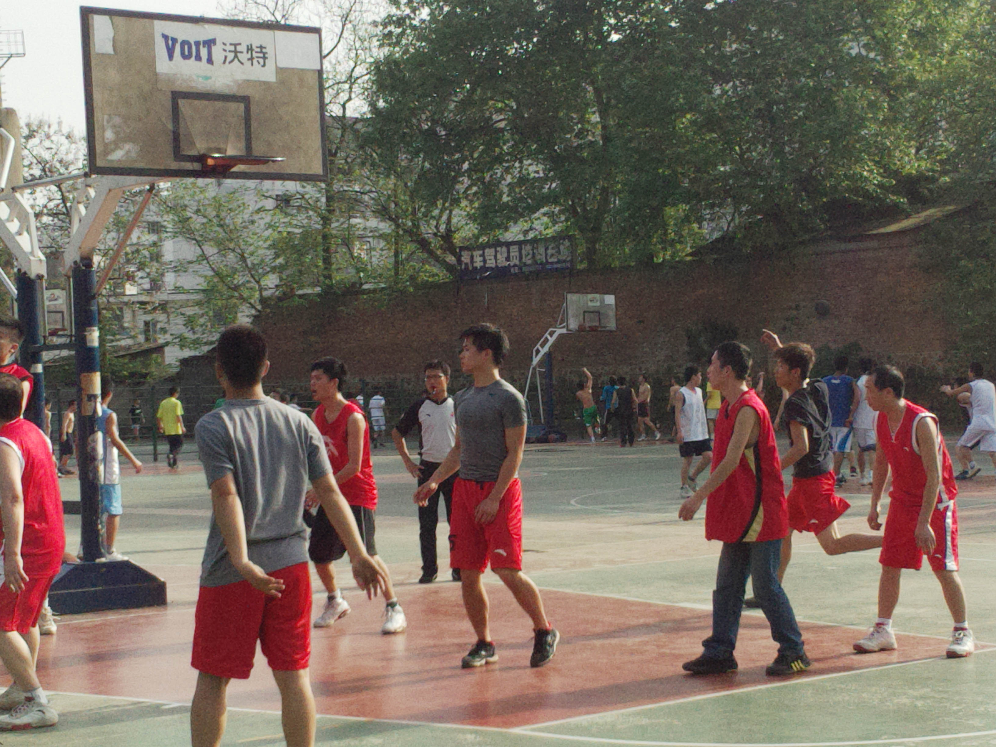 随着裁判的哨响,整个球场顿时充满了紧张的气氛,球员的激情全都淋漓尽致地体现在篮球场上。球员们积极进攻,严密防守,精彩的配合,巧妙的抢断,不时将比赛气氛推向高潮。场上场下的所有人都被篮球的魅力吸引。